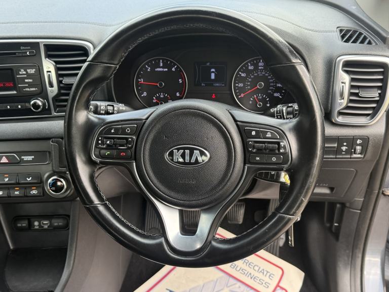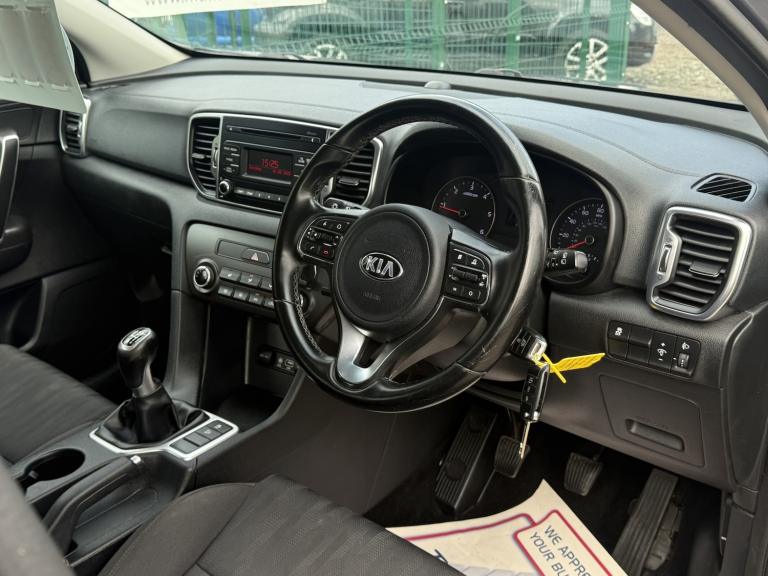 Kia Sportage 1.7 CRDi 1 SUV 5dr Manual (2016), practical and reliable SUV with fresh MOT and fresh service included, ULEZ compliant, supplied with 3 months warranty, finance available, part exchange welcome and nationwide delivery. Well equipped with 16in alloy wheels, air conditioning, cruise control, DAB radio, Bluetooth with music streaming, USB/AUX connectivity, front fog lights, cornering lights, and 60/40 split folding rear seats. Also benefits from rear air vents, ambient interior lighting, leather-trimmed gear knob, tinted glass, and a spacious comfortable interior. Includes ESC, traction control, EBD, trailer stability assist, tyre pressure monitoring system and multiple airbags, making it a practical, economical and dependable family SUV.