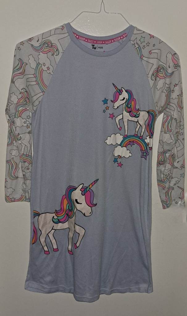 A super cute 2‑piece unicorn pyjama set in excellent condition. Includes a colourful unicorn nightgown and a brand‑new matching onesie, both soft, bright, and perfect for cosy nights or dress‑up fun. Ideal for any little unicorn lover who adores magical, comfy sleepwear.