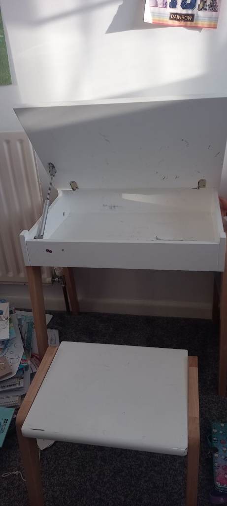 Well made children's desk and stool with option for storage inside desk. Excellent quality with some marks from use. Perfect back to school essential.