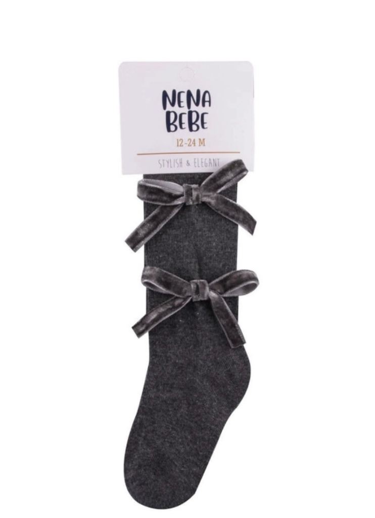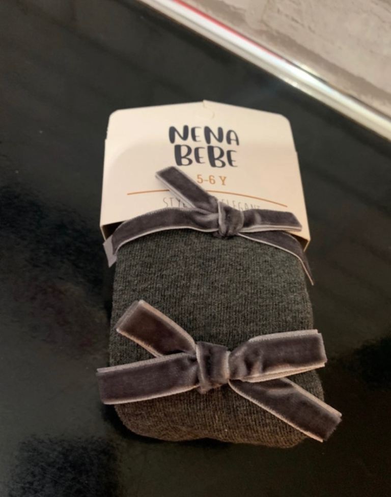 Girls grey tights with bows Age 5-6yrs brand new