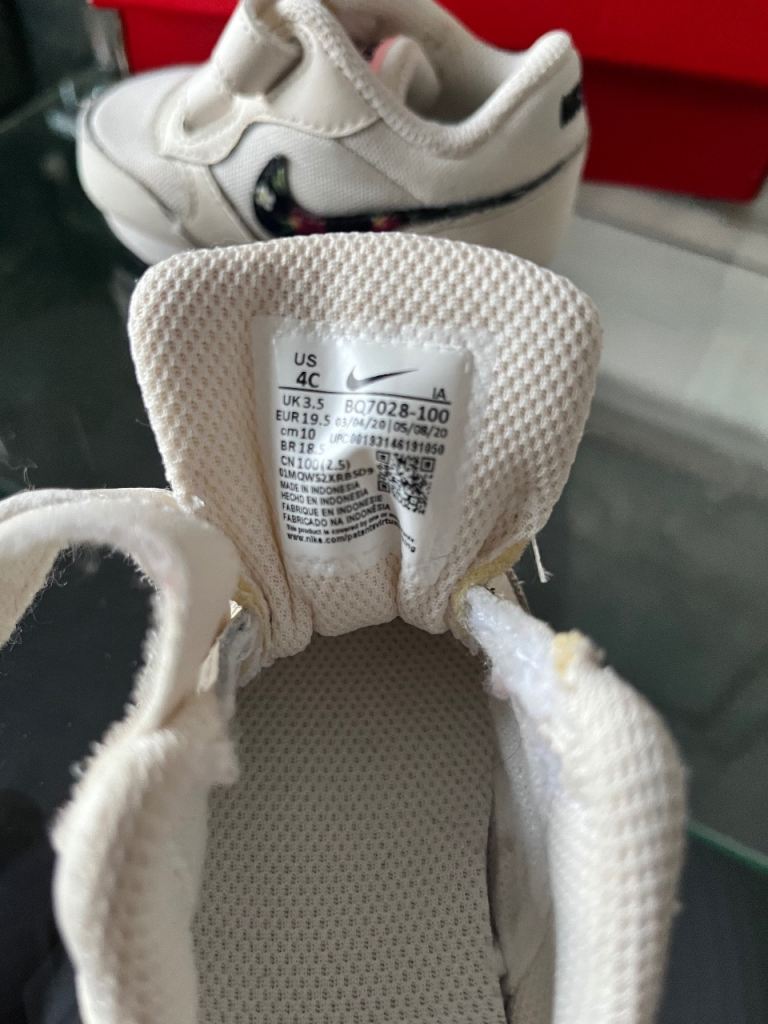 Juniors size 3.5 girls Nike trainers, only worn few times, very good condition, with a white/floral pattern for only £10 excluding delivery