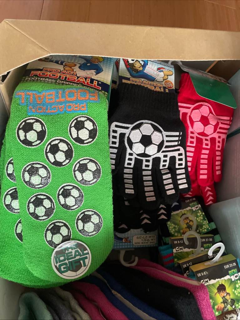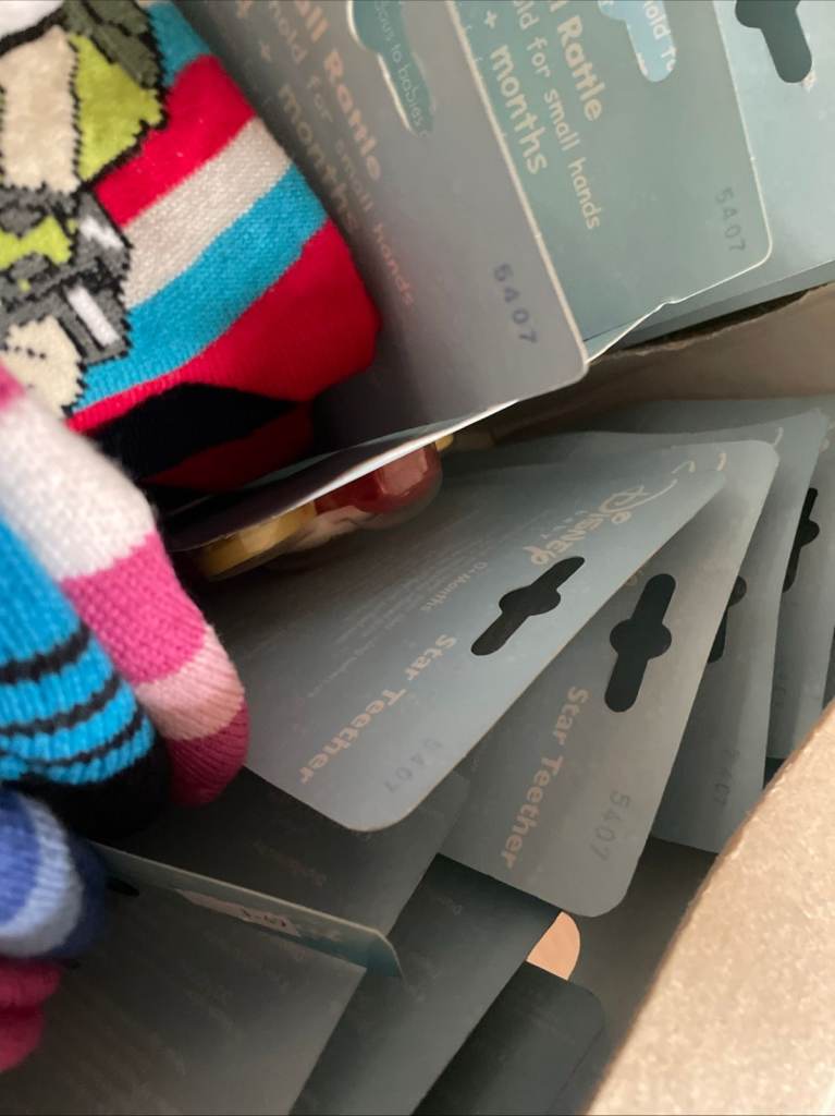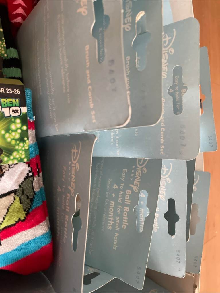 Former store stocks - never used, mixed of ball rattles, teethers, combs & brushes, hats, gloves and socks.