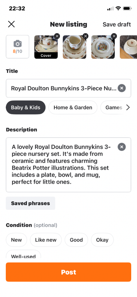 "Share photos and ask lots of questions about the items you are buying and selling"