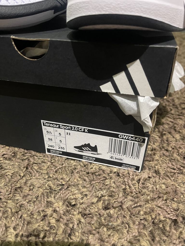 Brand new white and black Adidas trainers size 5 still in the box