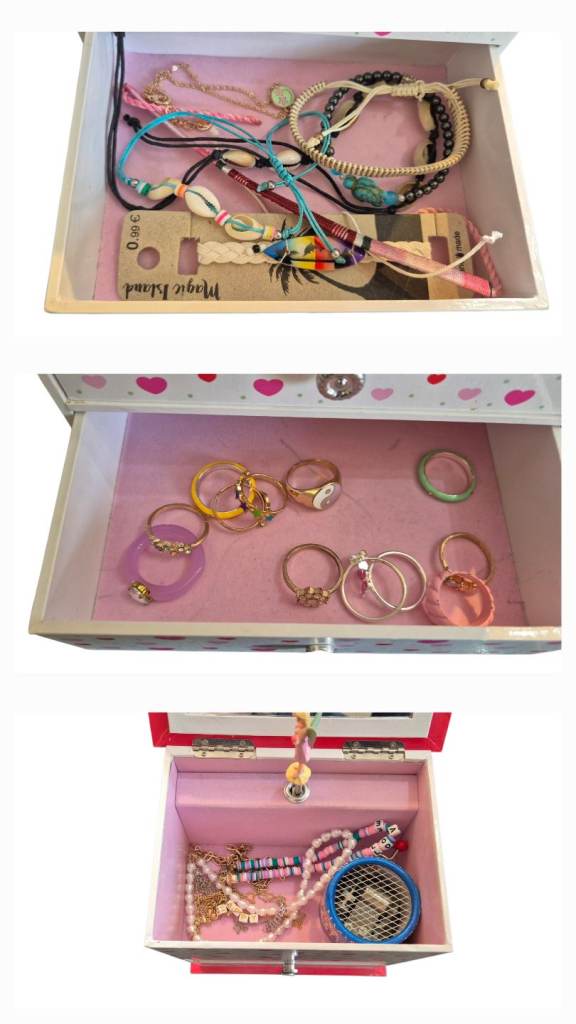 Kids musical jewellery box with lots of jewellery