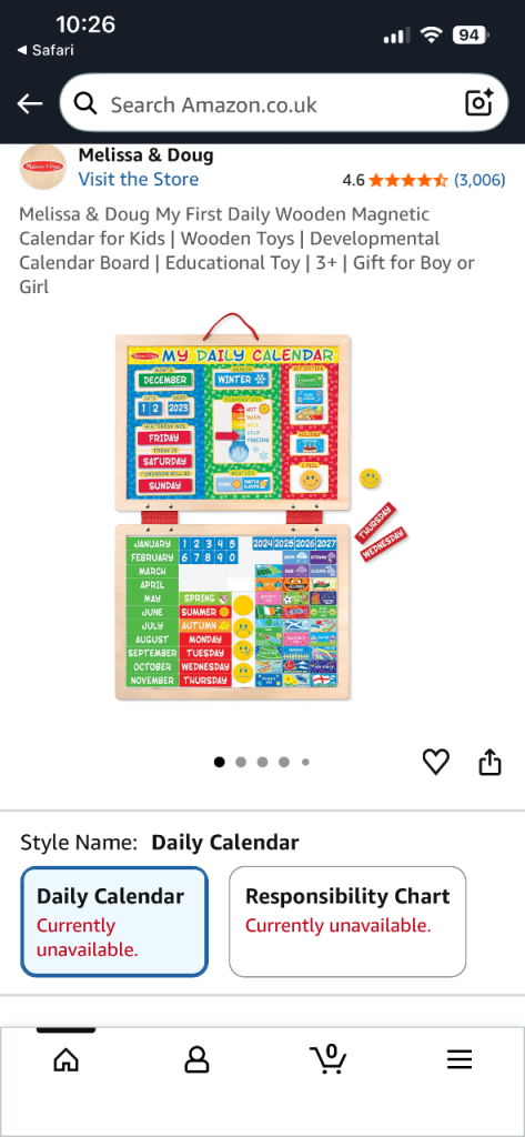 Melissa & Doug My First Daily Wooden Magnetic Calendar for Kids