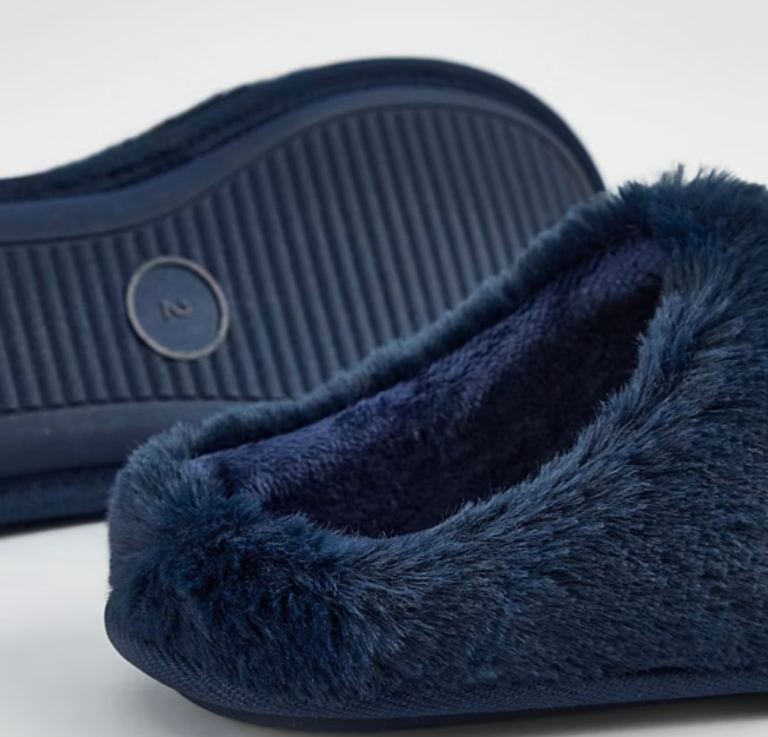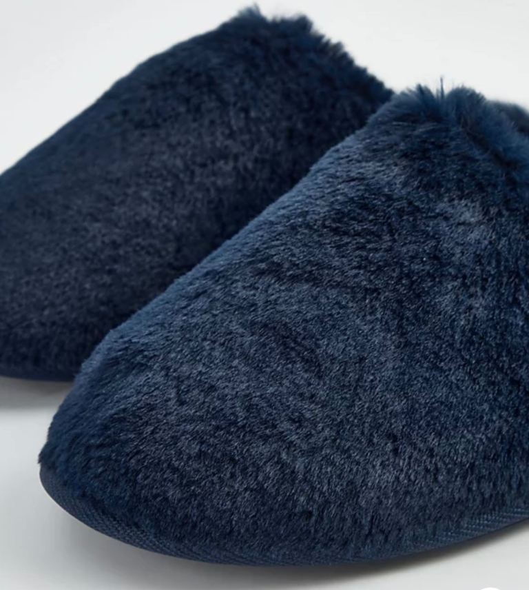 Navy Faux Fur Mule Slippers Size:UK12 EU31 Colour:Navy