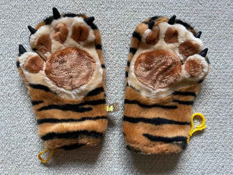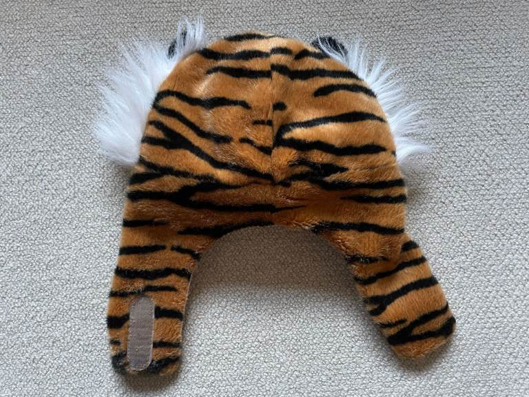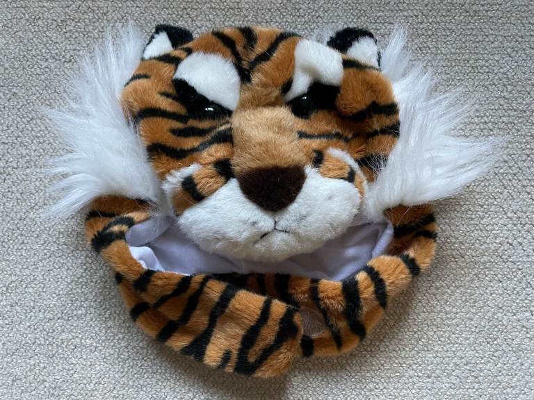 Original cuddly club animal tiger wool children's costume plush hat, paw claw gloves & tail, for age 4-10.