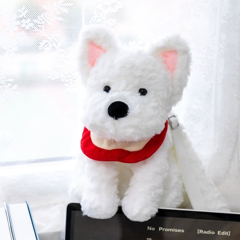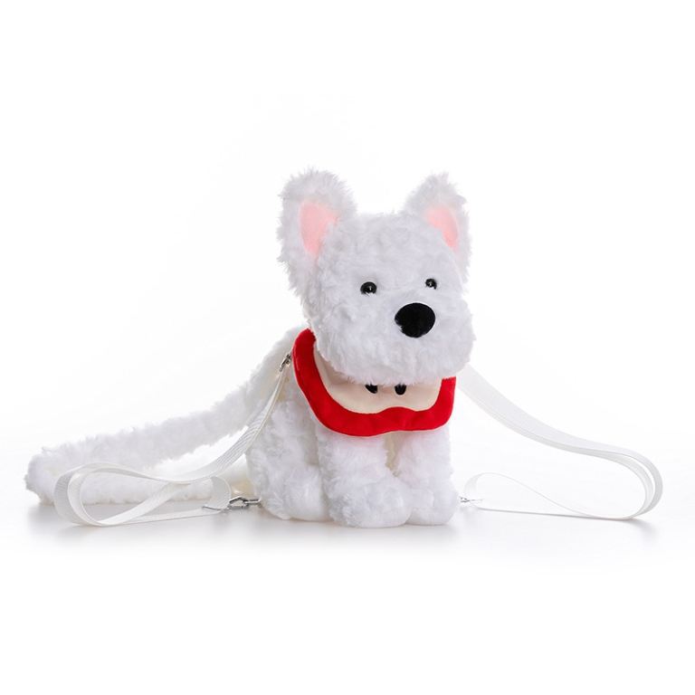 Adorable White Dog Plush Purse with Adjustable Strap