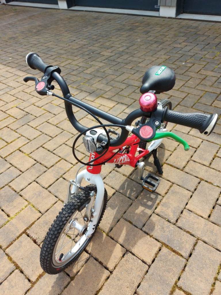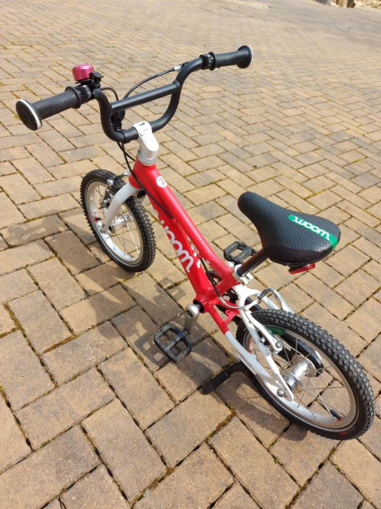 Selling our Woom 2 14” kids bike, one of the best lightweight bikes for young riders learning to cycle.