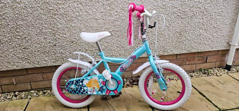 Apollo Mermaid kids bike, very good condition, comes with stabilisers and a pink carry box that fits over back wheel as well (not pictured)