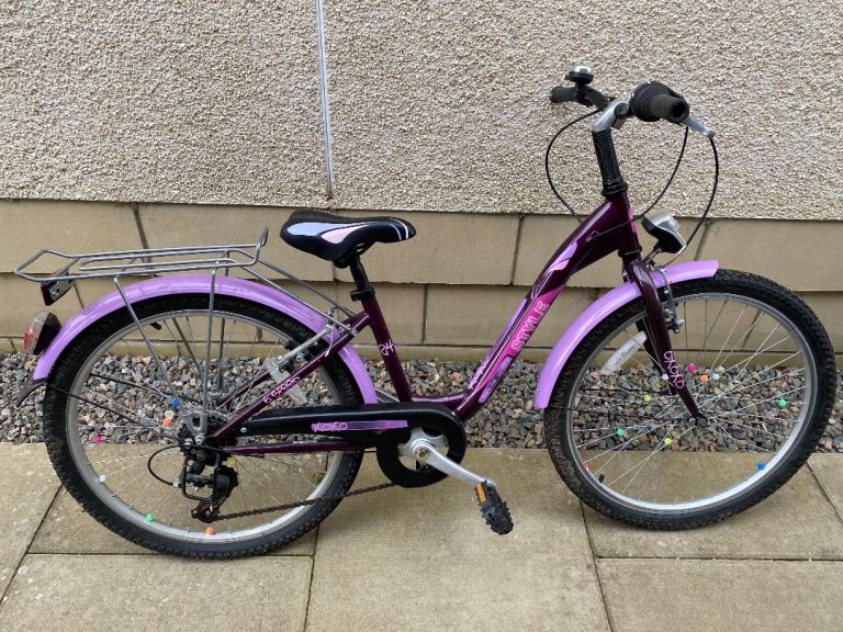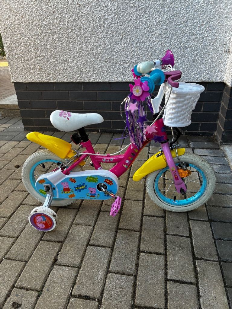 Features front and rear mudguards, chain guard, and small stabiliser wheels.