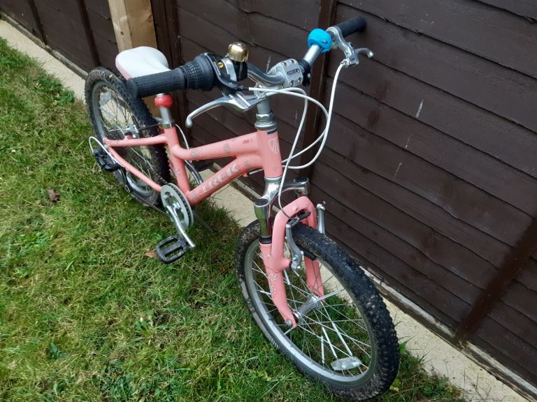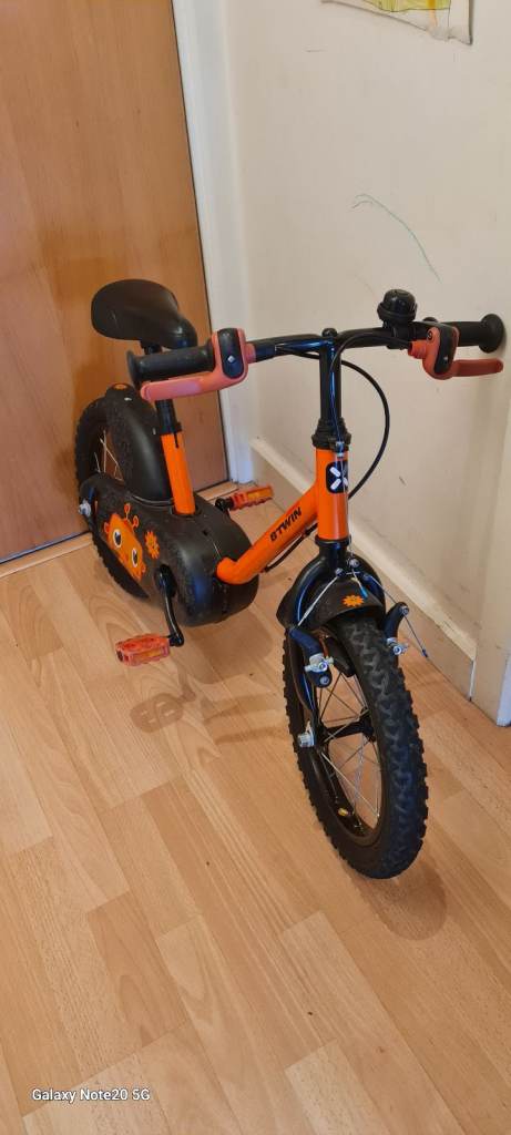 Lovely B'TWIN kids bike in a bright orange colour, perfect for learning.