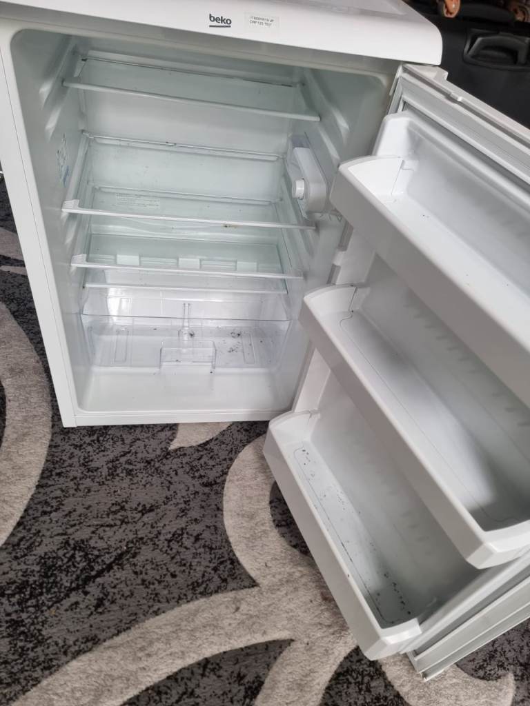 The fridge is fully functional. It has some minor marks and signs of use (as shown in pictures), but nothing that affects performance.