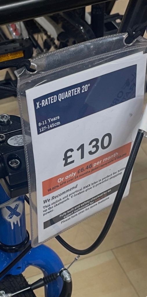 Blue X Rated Quarter 20” BMX bike (best suited for 8-11 years) - bought new from Halfords store only last year for £130 and only been lightly used hence the sale.