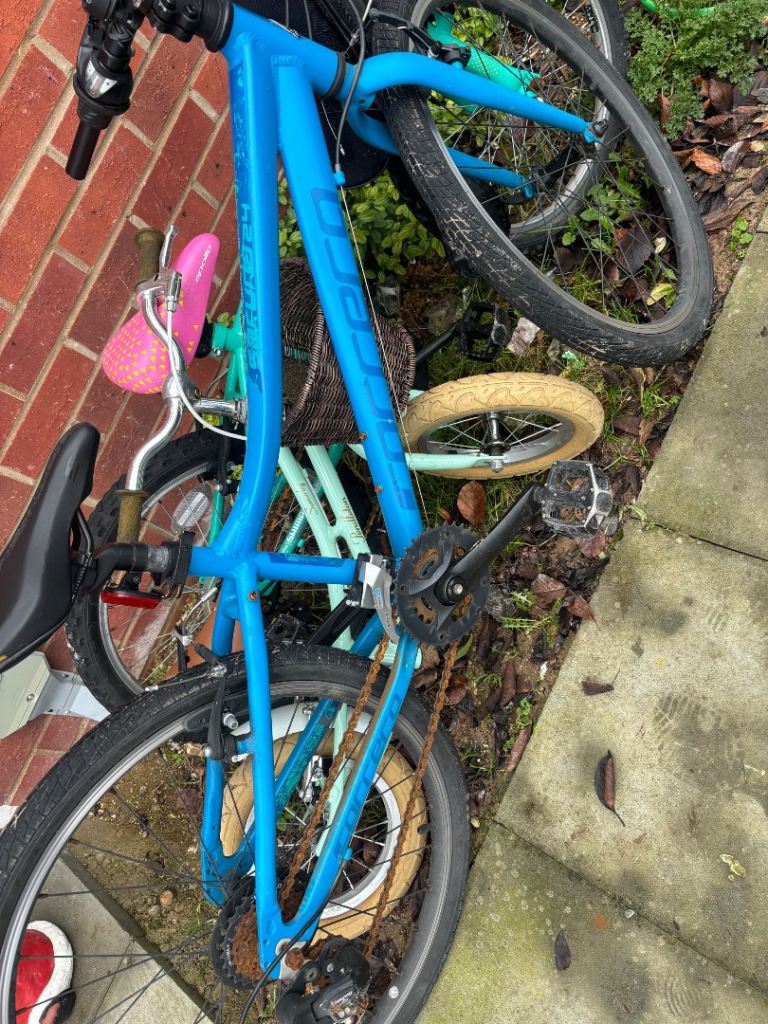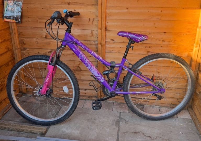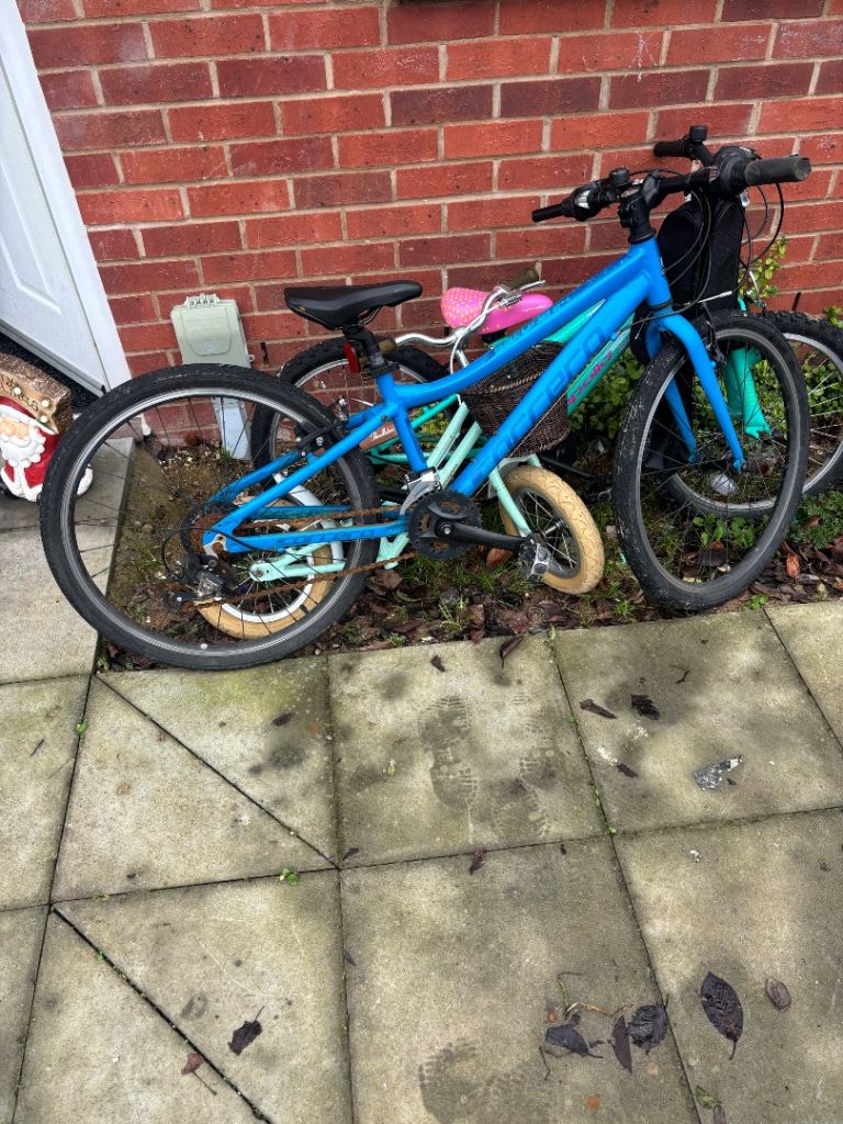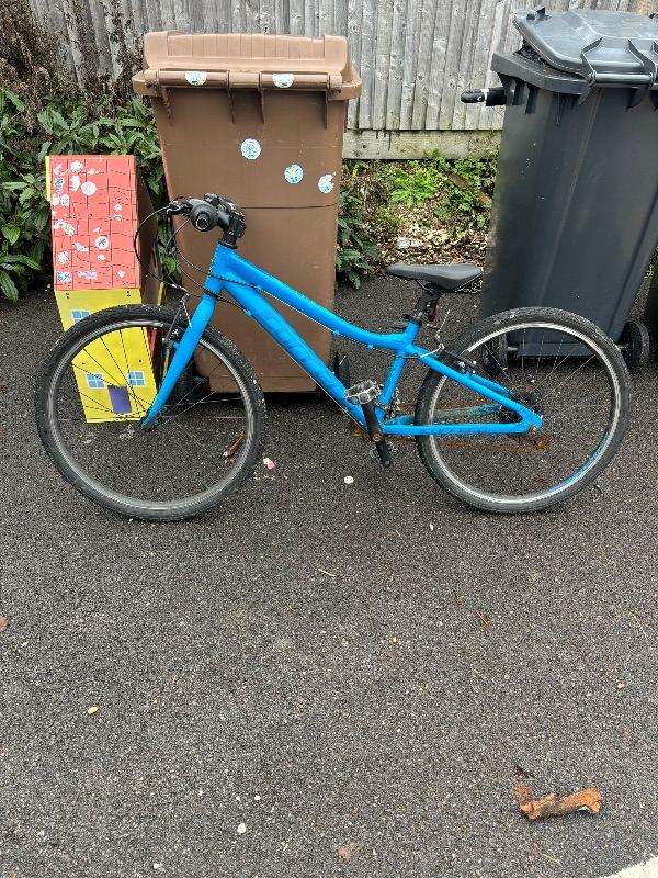 Frame barely has a scratch on, the chain is rusty but bike works perfectly fine just been left in rain hence the chain being rusty we are missing one handle bar gripper other than that bike is used everyday riding to school and back was serviced last year in Halfords it’s a nice bike