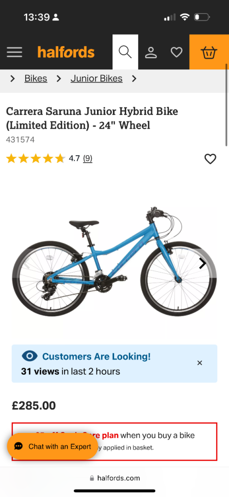 Posting for 6+ monthsCarrera Saruna Junior Hybrid Bike (Limited Edition) - 24" Wheel