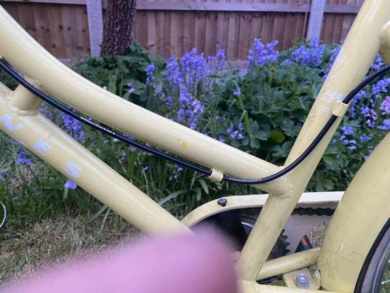 6 speed (Shimano), V-Brakes, 24" wheels, has some paint chips (refer to the last two photos) and includes an additional front light - called 'Mini Hornt'.