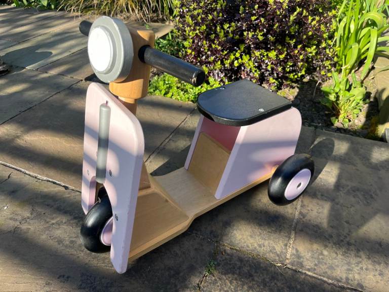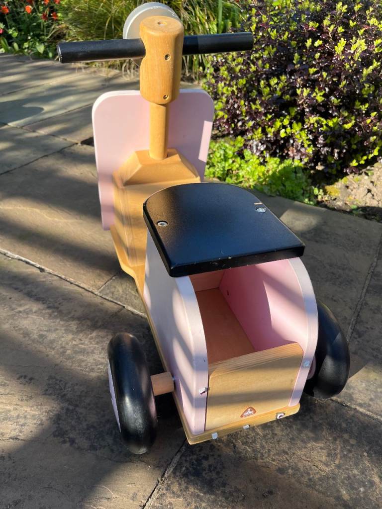 Pink wooden trike with under seat storage