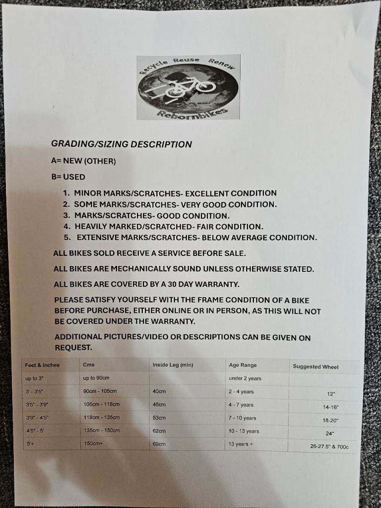 PLEASE NOTE ALL BIKES ARE USED AND WILL HAVE IMPERFECTIONS, INCLUDING SOME AGE-RELATED COSMETIC MARKS/SCRATHCHES/STICKER RESIDUE. BIKES MAY HAVE PAINT TOUCH UPS.