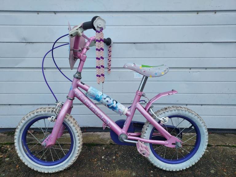 JEWELS BIKE for children aged about 4 to 6 years old - 14 inch wheels. Bike in good condition & works well and recently serviced by Reading Bicycle Kitchen - an entirely voluntary run group who restore, repair and recycle bicycles. We also help people repair and maintain their own bikes.