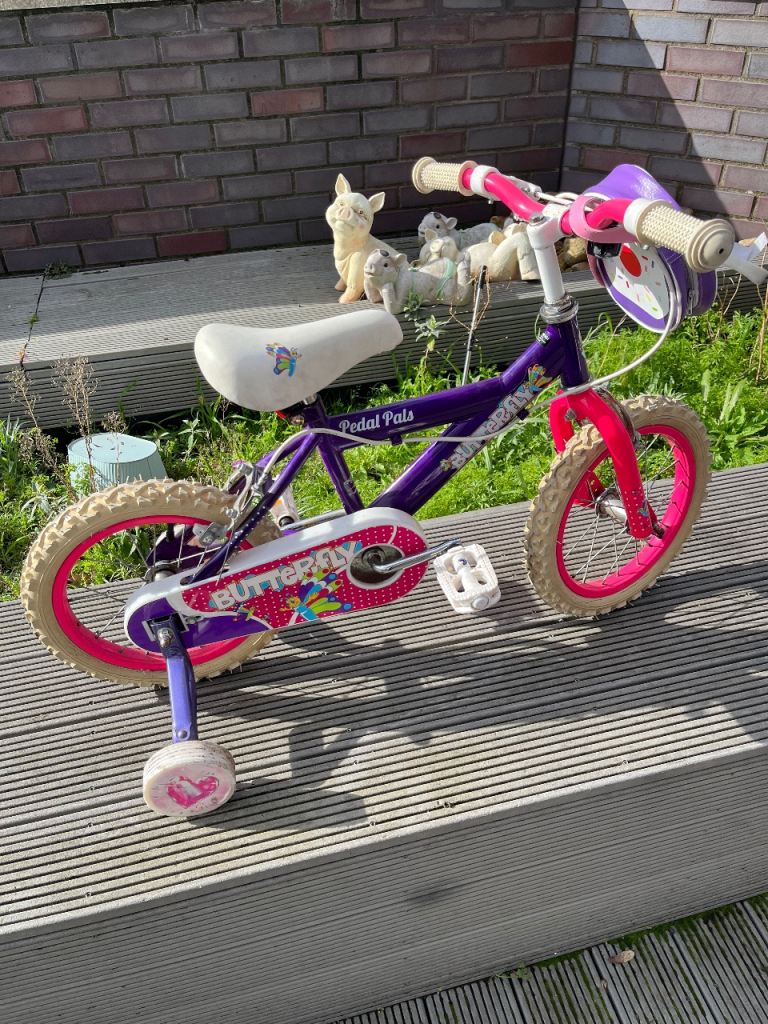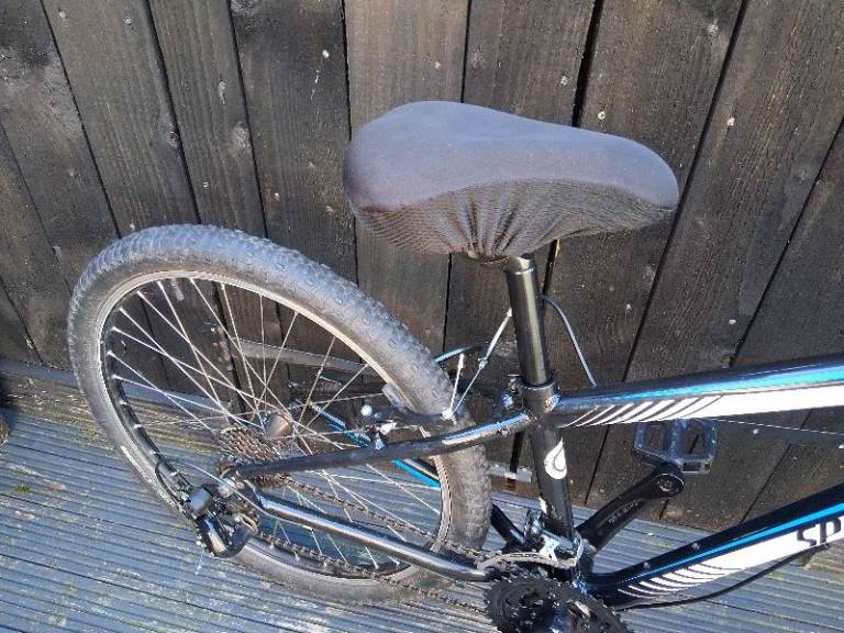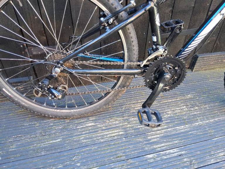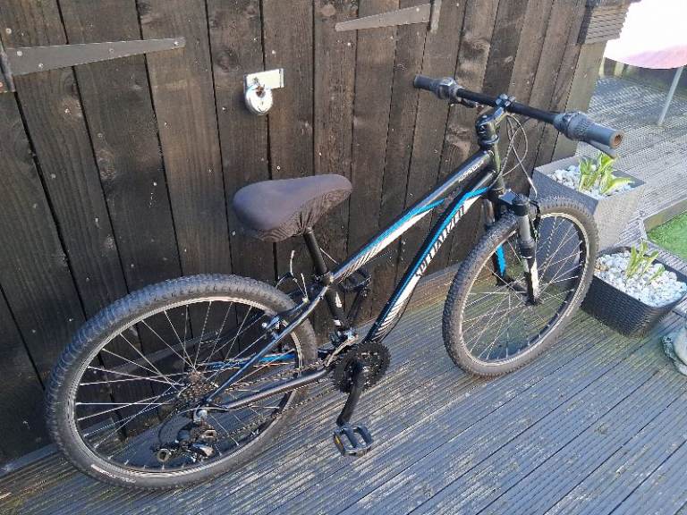 12 inch frame, 24 inch wheels, 21 gears with grip shifters, V brakes, front suspension, gel seat cover. Set up, lubed and ready to ride away. Odd cosmetic marks but nothing bad.