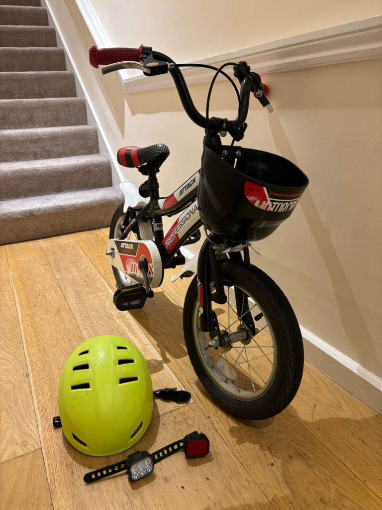 Posting for under a monthKids Bike (14'' Wheels) – Training Wheels, Helmet & Lights Included