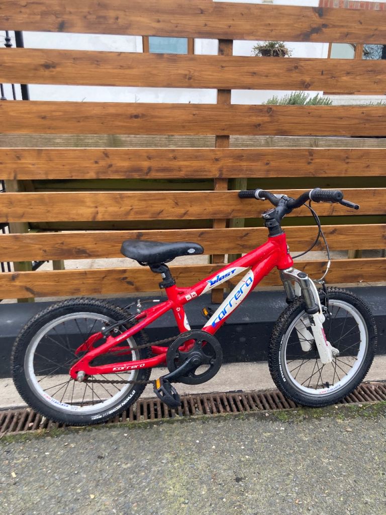 Well used 16 inch kids bicycle in good working condition. It is a bit scratched up but works well. We do not need it anymore because the kids have out grown it. It has two new tyres. No gears on it. £15. For collection only.