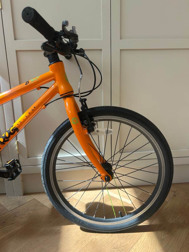 Fantatastic light weight kids Frog Bike 52 in excellent condition and recently serviced. The bike is 8 speed and in a lovely unisex orange. Stored inside and well looked after so very few signs of wear. Comes complete with 2 unused off-road tires, that originally came with the bike. Would suit ages 5-9 year old.