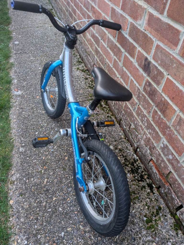 For sale is a littlebig bike. If you are unfamiliar, these are a 3in1 bike that transition from a small balance bike suitable for 2yrs+, up to a big balance bike to suit approx 4yrs+ by flipping the frame over (two bolts) and then to a pedal bike once your child is ready (2 more bolts). Lightweight aluminium frame means your 2 yr old isn't expected to powerlift a rusty and heavy Halfords special around your local footpaths.