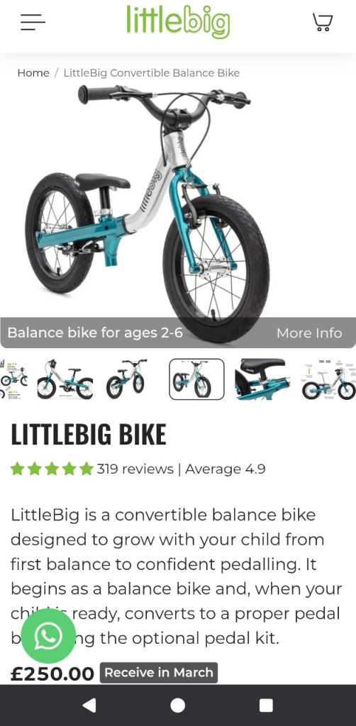 Littlebig bike: 3in1 balance bike to first pedal bike, suits 2-6yo.