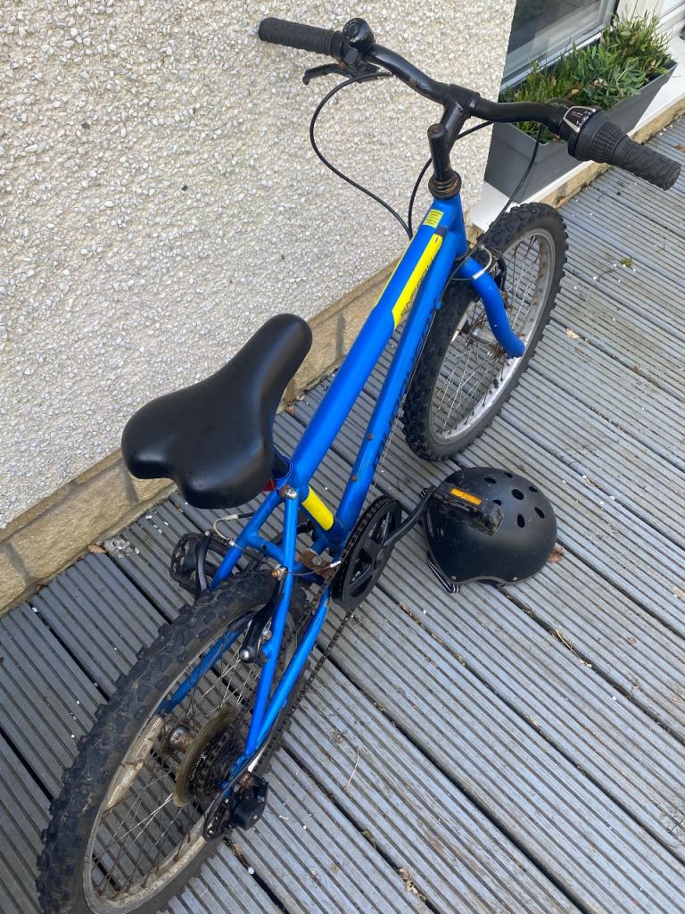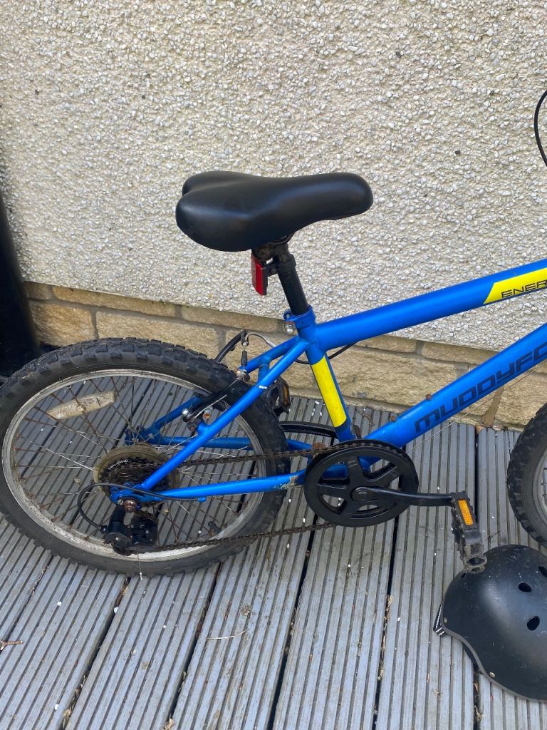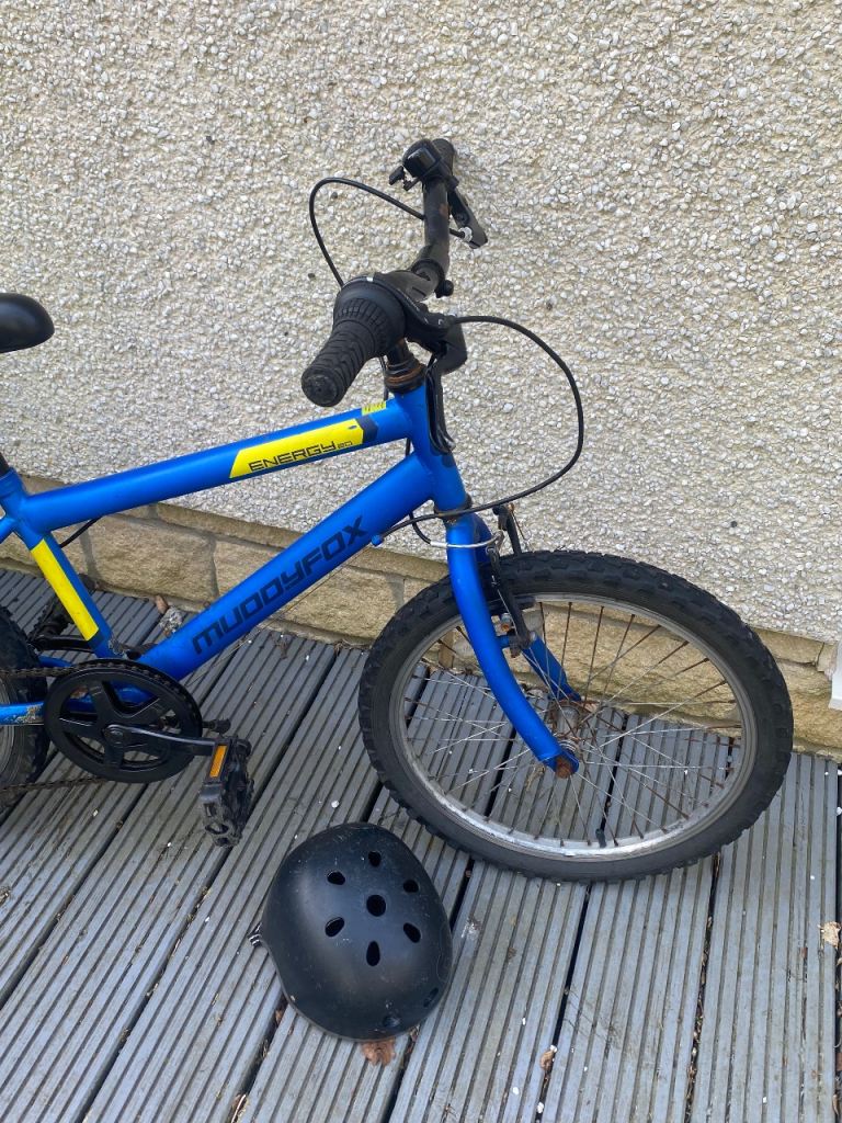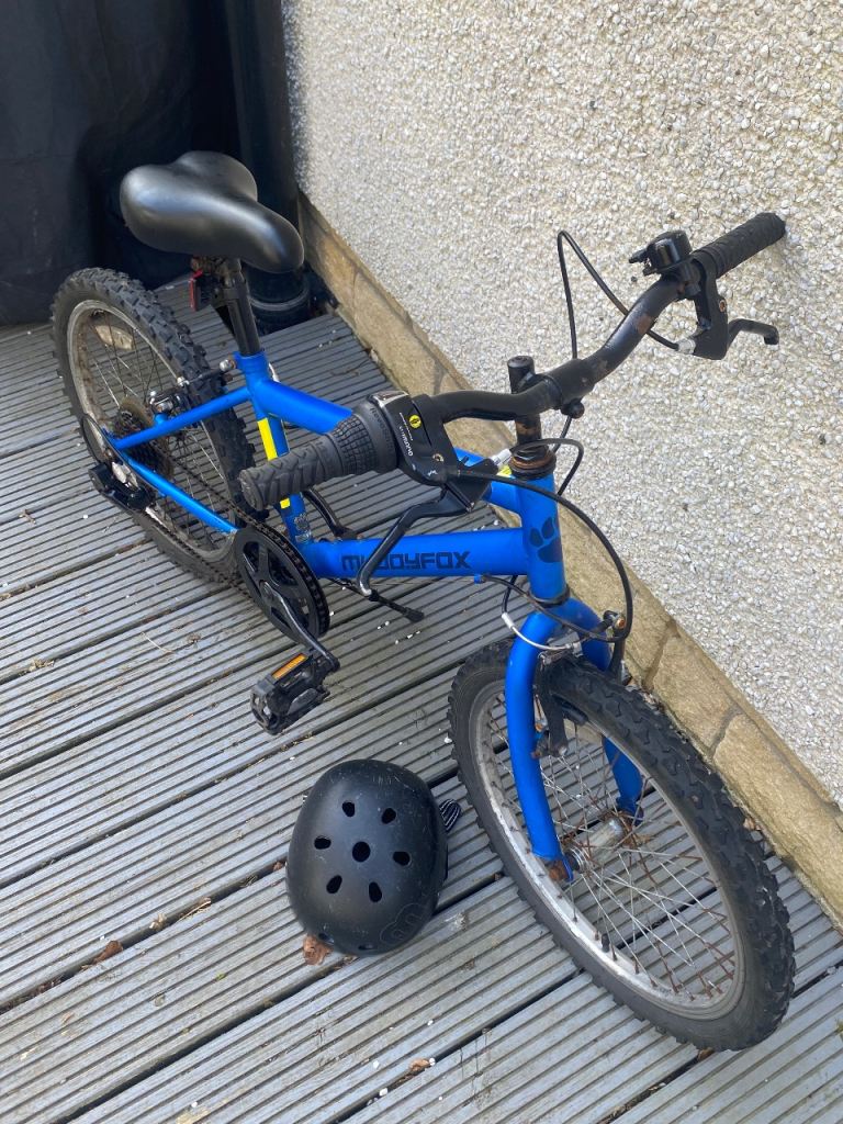 Muddy Fox kids bike. 20”. Cosmetic damage to paintwork etc from usage. Helmet included if wanted.