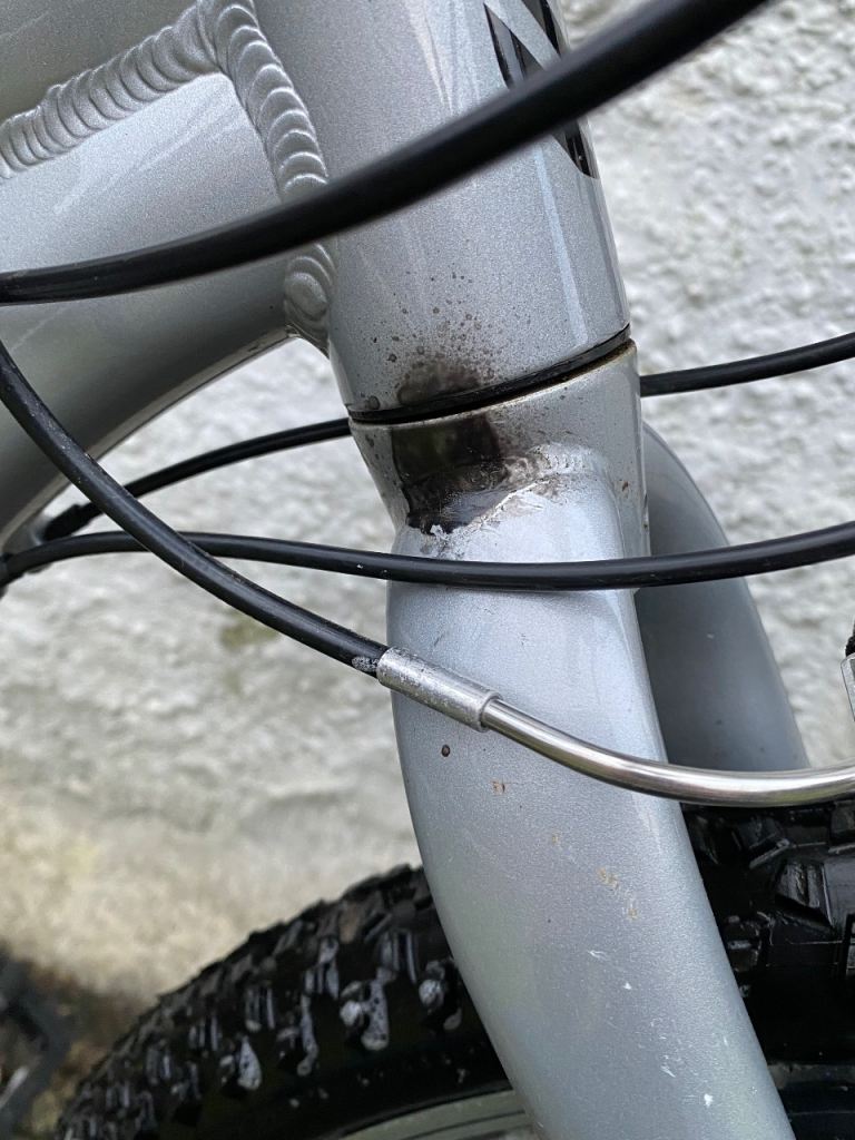 Bike was used sporadically by my son who has now out grown it. Still in good condition with the only issue being a small amount of corrosion that had started at the top of the front forks which I have sprayed with some anti-rust black paint (see photos). Bike bought in 2021 for £399.