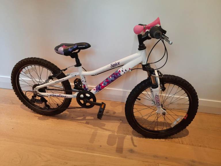 Saracen Spice girls bike bought from new but rarely used and well looked after. Has recently had 2 new inner tubes fitted and hasn't been used since. Comes with a horn. Some slight hairline scratches on the frame as shown in photo, otherwise in beautiful clean condition. Would make a lovely Christmas gift.