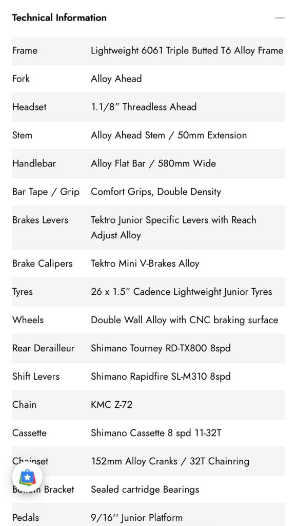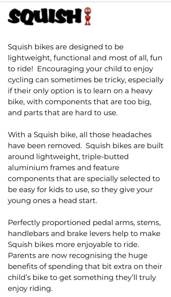 Posting for 7+ yearsSquish 26 inch, 15 inch kids bike