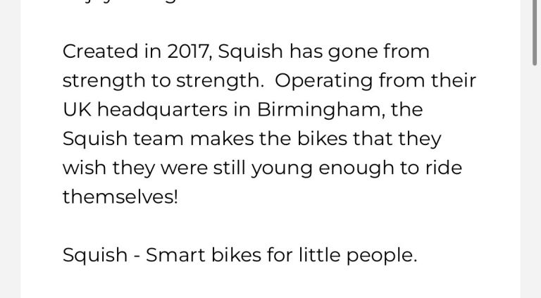 Squish bike with nearly new 26 inch tyres and 15 inch frame. Collection only from Eaglescliffe. I am at home most days/times if you need to collect in a hurry in time for Xmas.