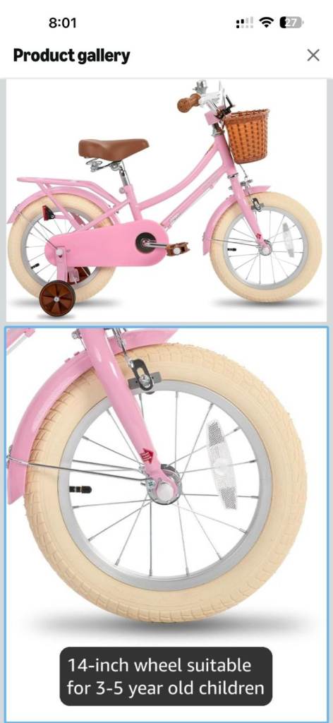 Posting for 3+ monthsSTITCH MANCHI 14" Kids Bike with Basket for 3-5 Years Pink