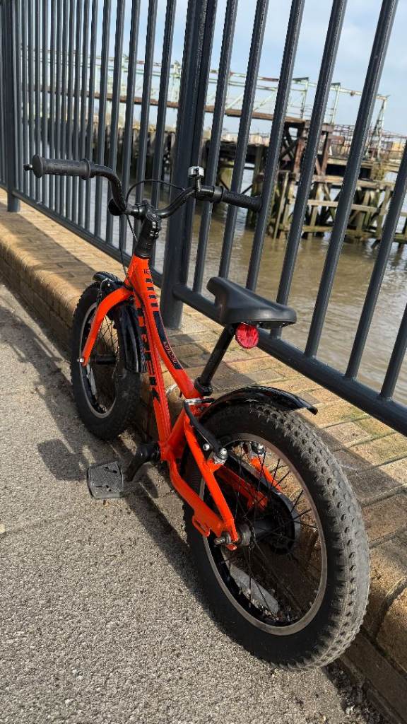 Selling a Trek Precaliber 16 kids’ bike with detachable side wheels. Note that this is a freewheel model - no gears. The bike is in good working condition. It has some scratches on the brake levers, a bit of rust on the rear mudguard and one lever has been replaced.