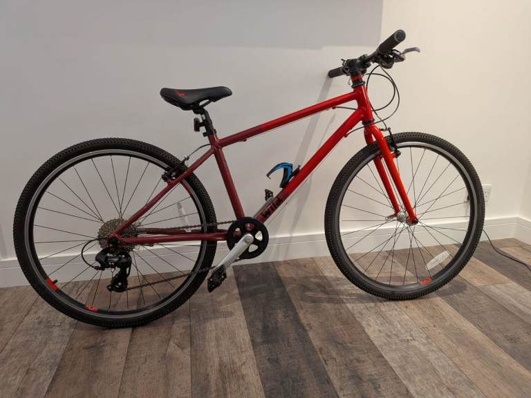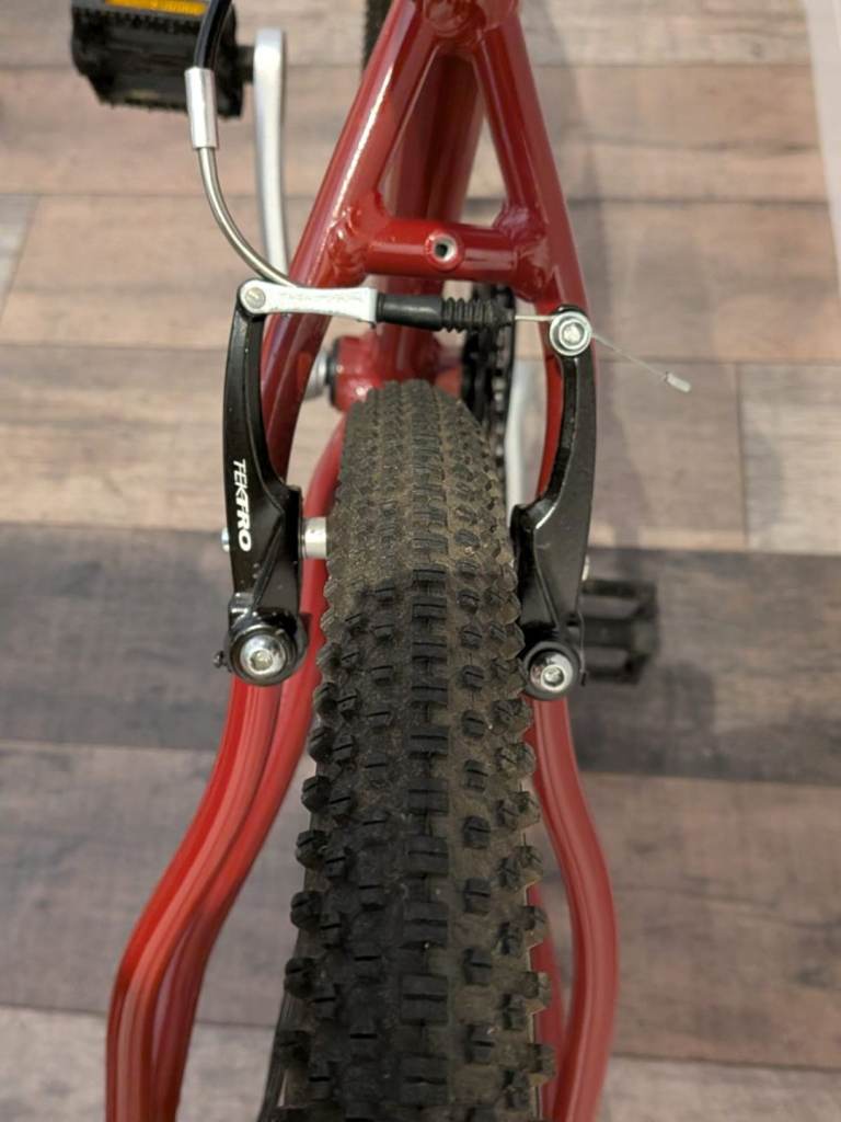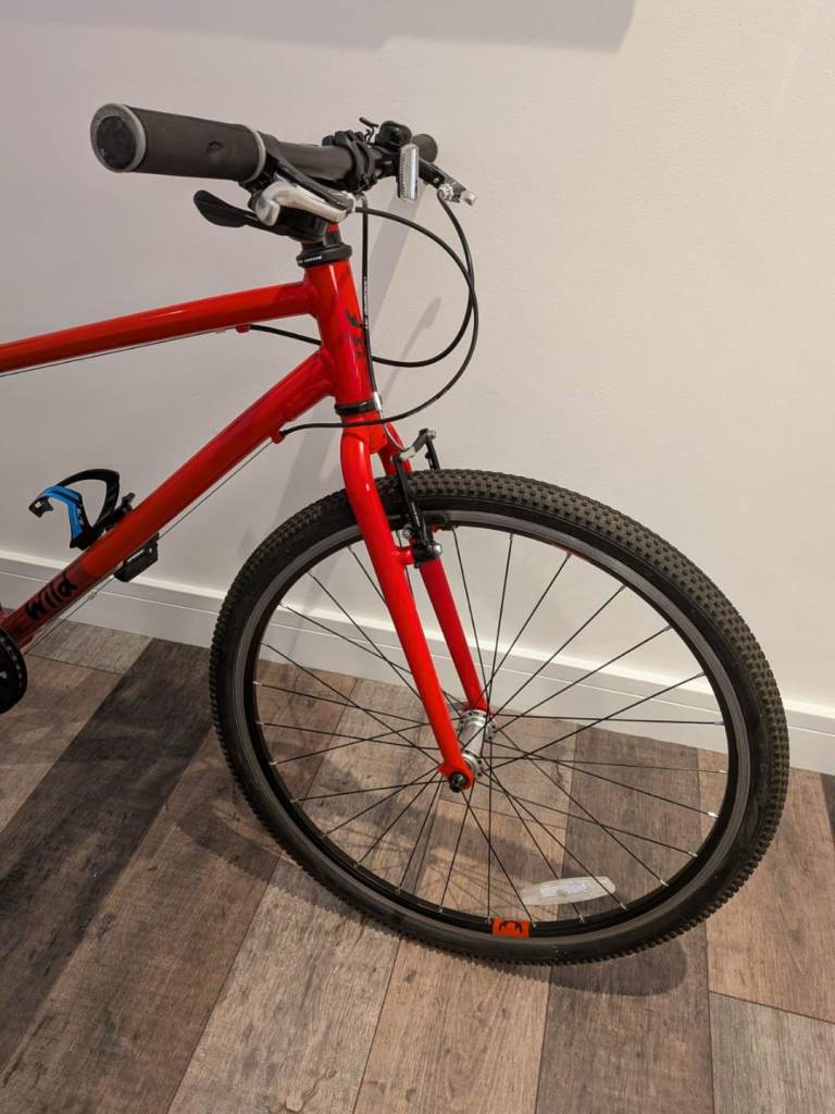 The Wild 26 Inch Kids Junior Bike is a lightweight aluminium bike designed specifically for kids. With an 8-speed Shimano derailleur gears system, it allows for smooth and easy gear changes. The flat handlebar and thumb shifter make it easy for young cyclists to control and navigate. Equipped with V-brake front and rear brakes, this bike offers reliable stopping power. The red colour, tubular tyres, and no suspension features make it a stylish and practical choice for unisex kids looking to stay active and explore. These bikes are Similar to Frog bikes with the same quality components used.