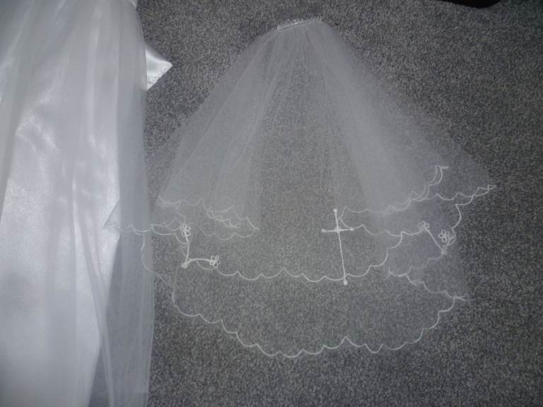Girls Communion Dress with Veil Age 7-8 years worn once for a couple of hours