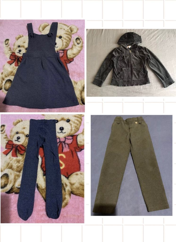 4-5years girls clothing bundle, pinafore trousers tights hoodie