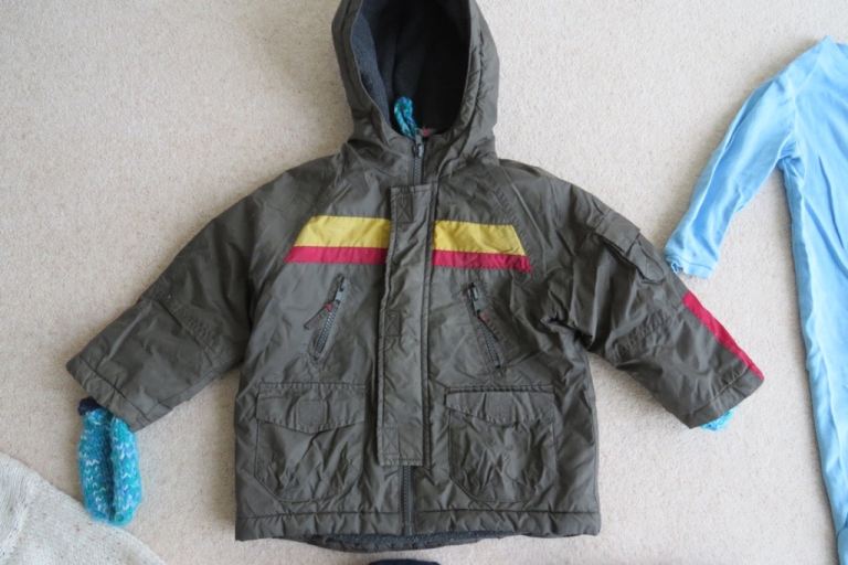 1 x Ladybird Hooded Coat/Jacket with wool mittens (dark green) - zips & pockets