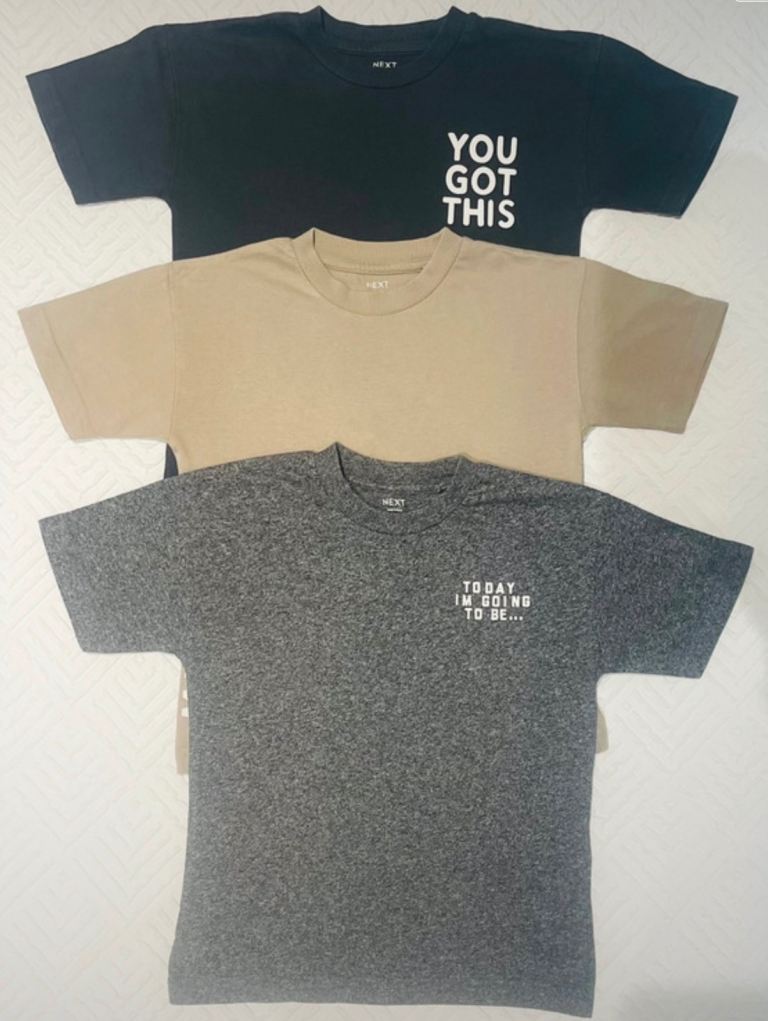 3 Oversized T-Shirts which are Age 18/2 Years but because they’re Oversized I’ve Added Them To This Age Bundle. Colours:- Navy, Beige & Grey Fleck.