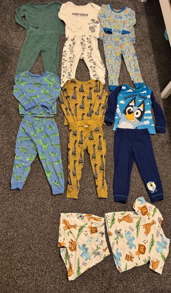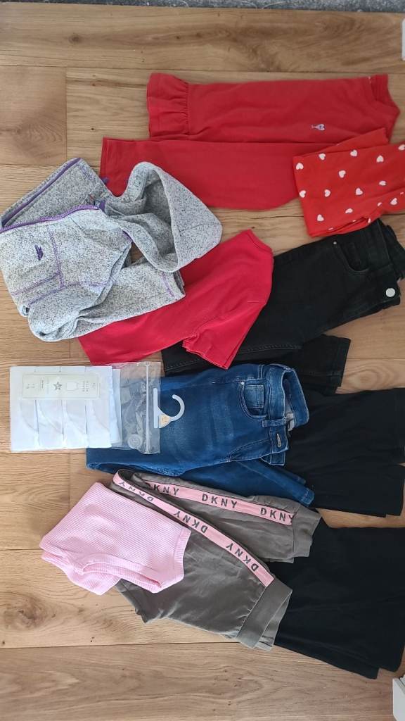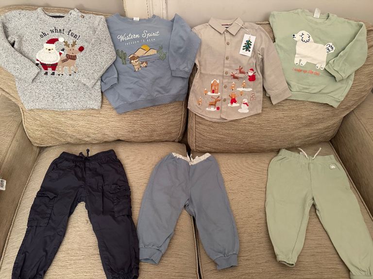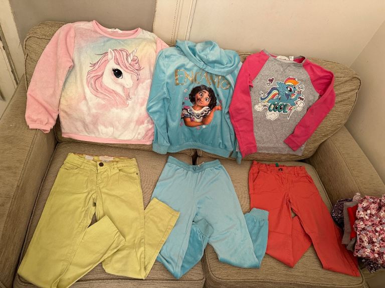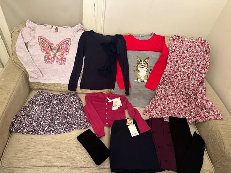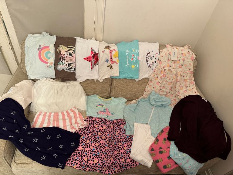 Assorted children's clothing including tops and trousers in excellent condition (17items). All clothes washed. Few items are new. Clothes from Moonsoon, PoP, H&M, Benetton…