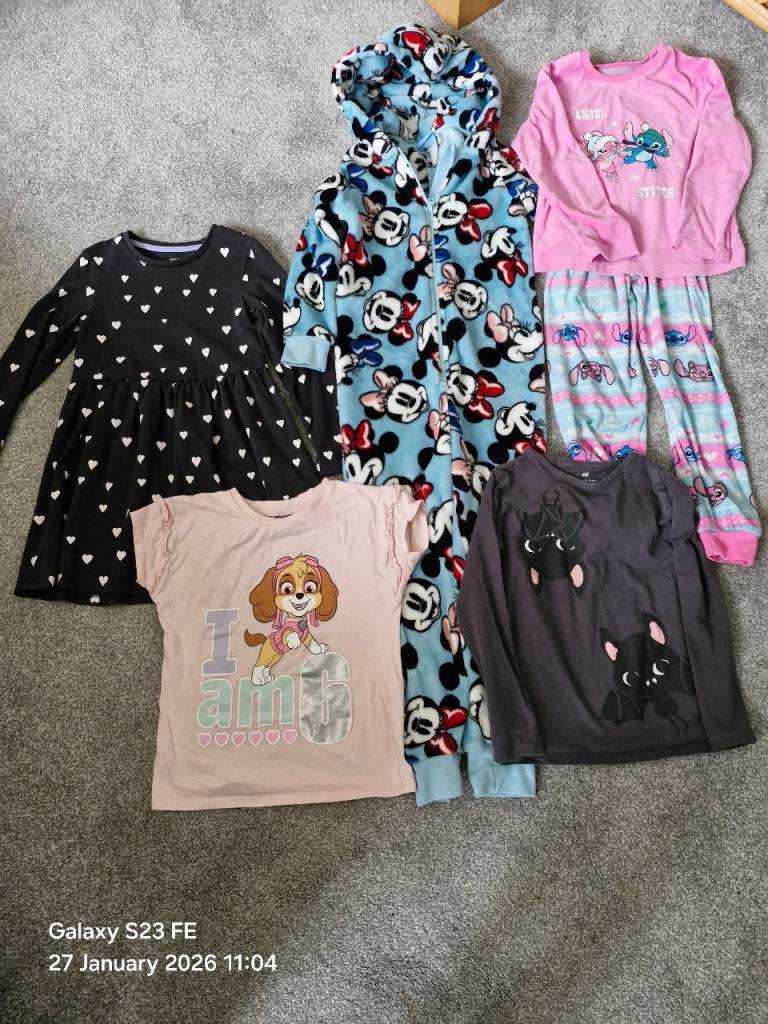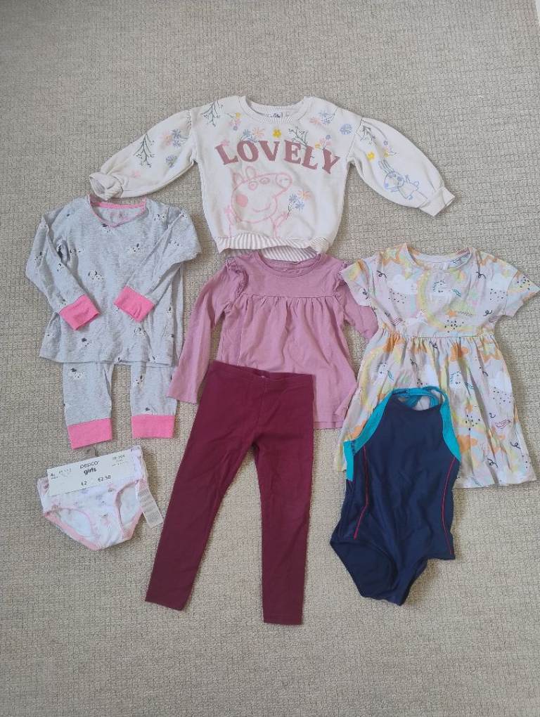 Bundle of clothes age 3-4 including denim jacket, jeans, dressing gown, gloves and two new pairs of knickers.. Clothes in good condition.
