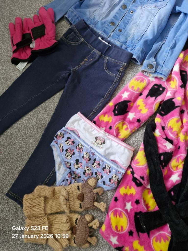 Bundle of clothes age 3-4, including dressing gown , pjs and leggings.