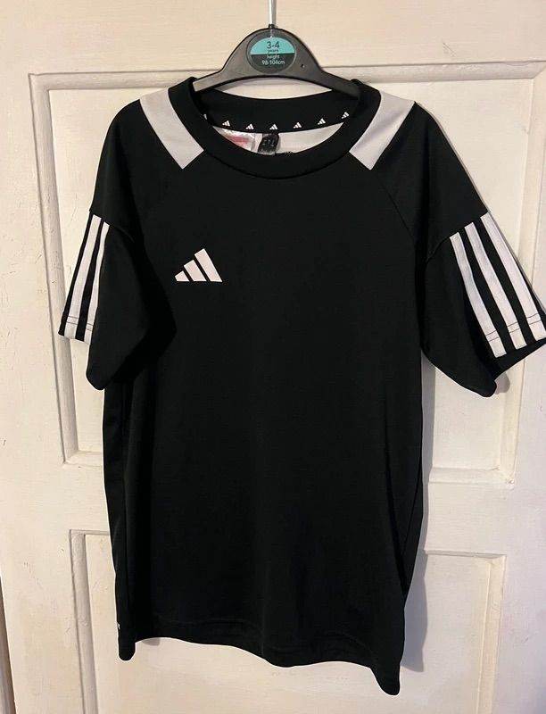 Adidas black and white t-shirt - Age 9-10 years. Good condition. £3