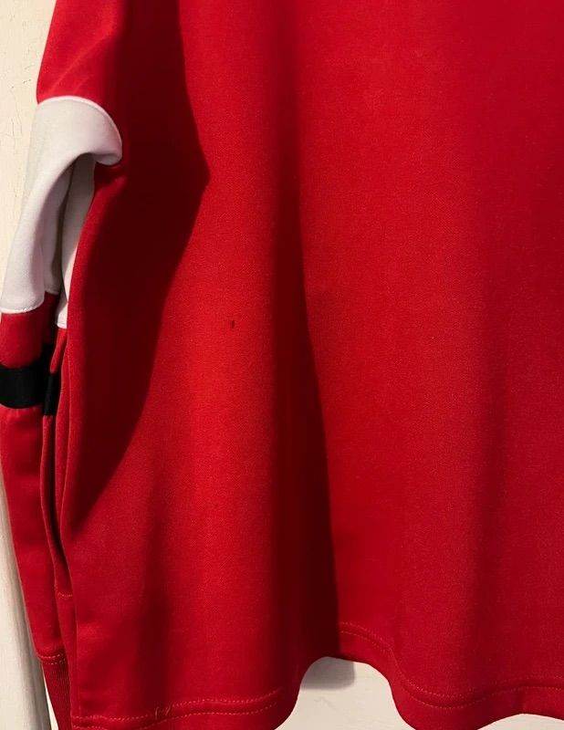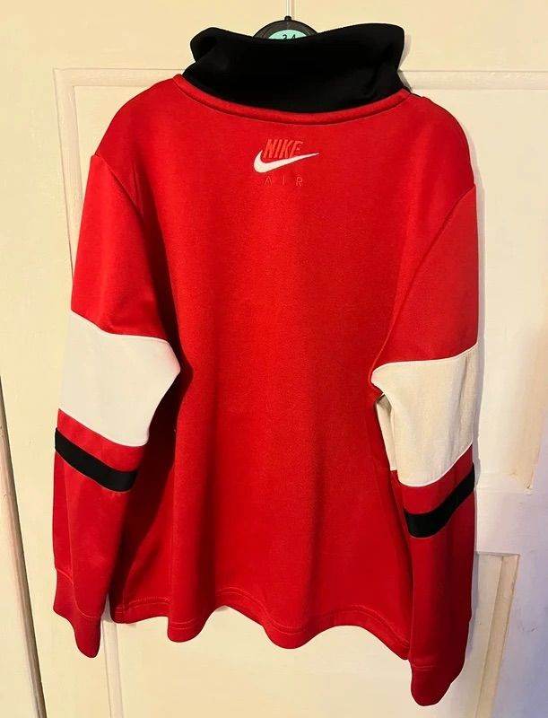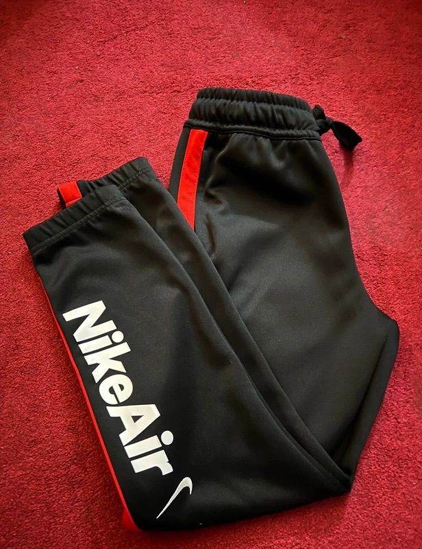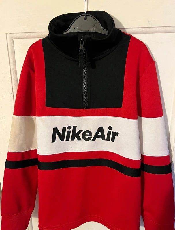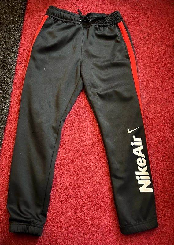 The Nike Air tracksuit set - the quarter zip jumper has signs of wear - bobbling on back and right sleeve has cup of tea stain on the white part of it (see pictures) so might need dry cleaned to remove! Tracksuit bottoms has some bobbling too but otherwise still wearable satisfactory condition. Both are a kid’s size small 128-137cm on label. £8 for both.