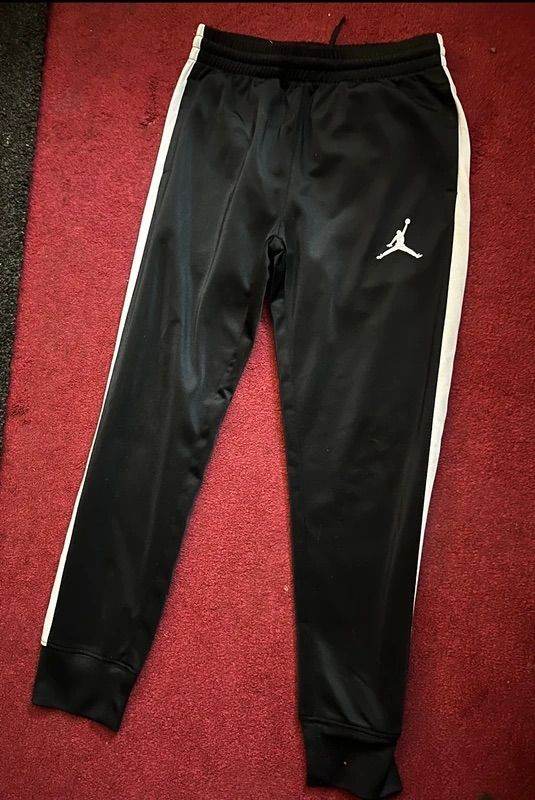 Jordan black and white tracksuit bottoms, age 8-10years 128-137cm on label. Worn condition. £3