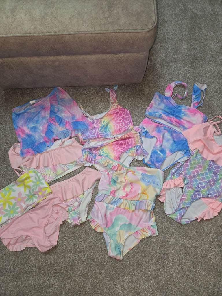 Stitch swimsuit 8-9 £5.Swimming bundle (bikinis and swimsuit) age 7 years and odd 8yrs £10.Stitch denim jacket 8-9 £5.